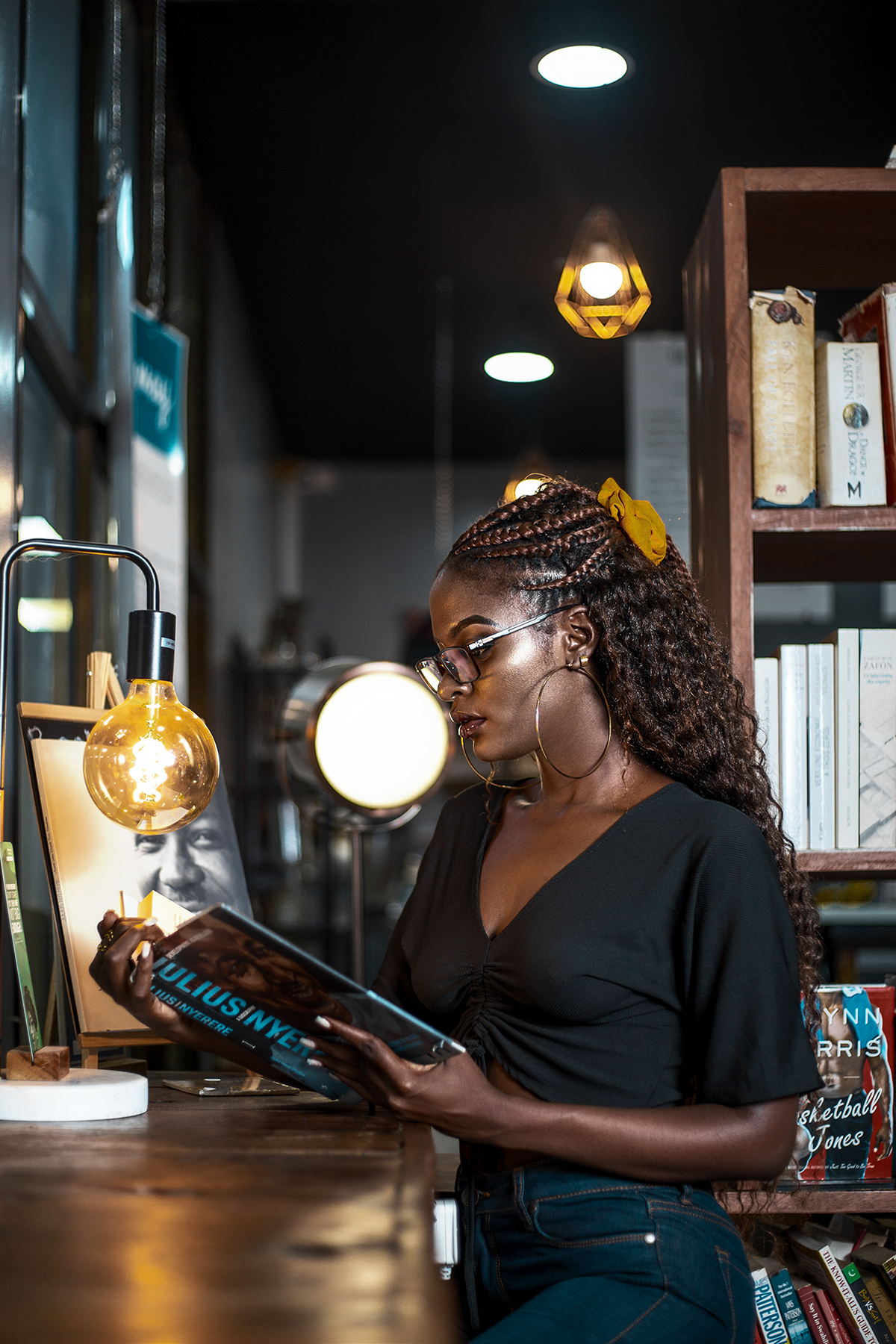 Foi feito retoque de pele utilizando frequência, dodger e burn e color gradieng. Após o término apliquei nitidez e um Sharpen.